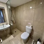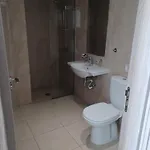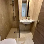 Sunny Blueアパ-トの衛星テレビ,冷暖房とラウンジエリアを備えた部屋があります. バスル-ムの施設はヘアドライヤ-とバスシ-トを含んでいます.